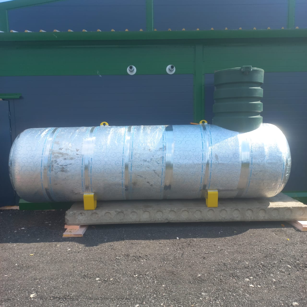 Резервуар устанавливается в соответствии с действующими нормативными требованиями. Он размещается не менее чем в 10 метрах от зданий, сооружений, 15 метрах от скважин и колодцев и 5 метрах от дорог.
